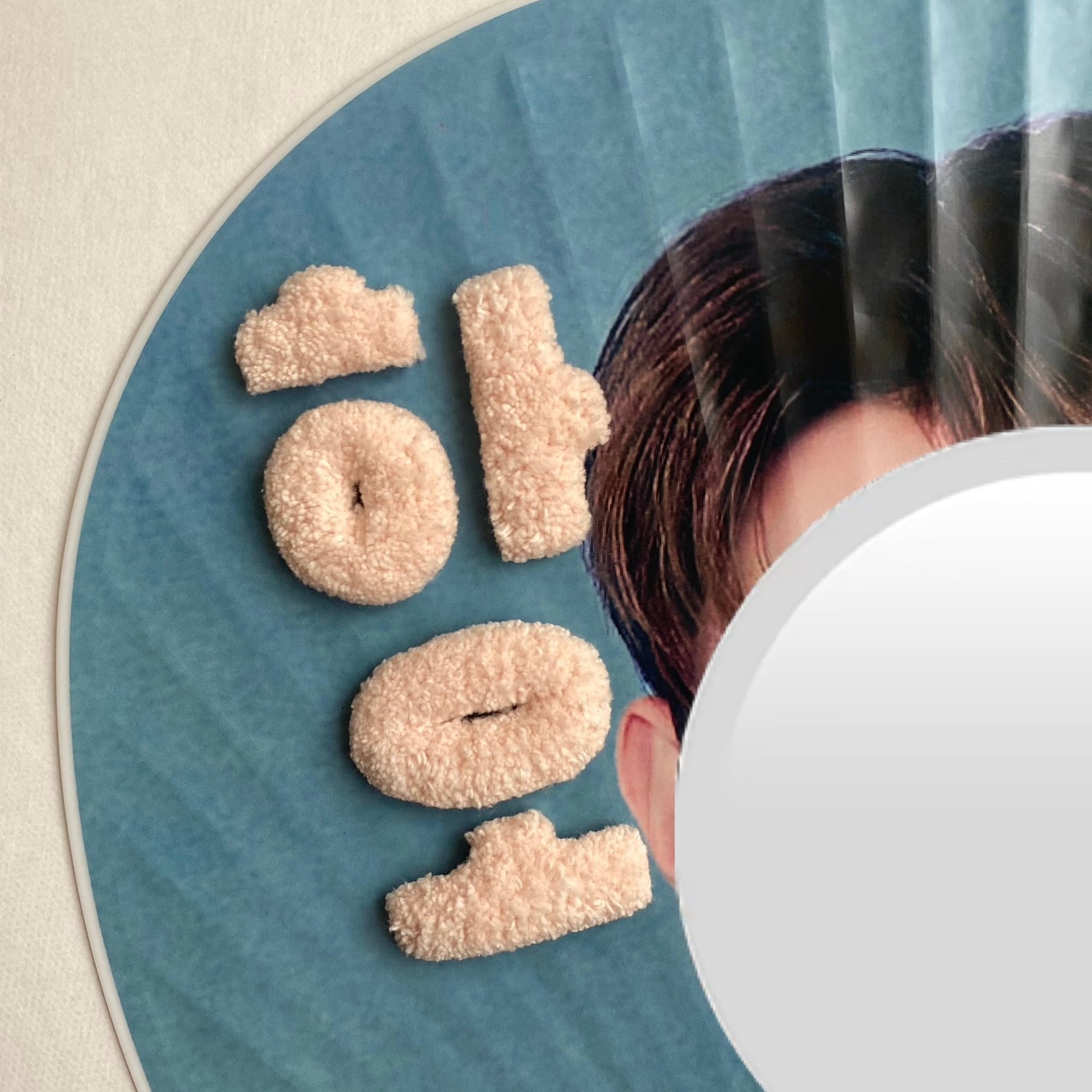 布に毛糸で模様を刺し、立体感のあるデザインを作る作品です。