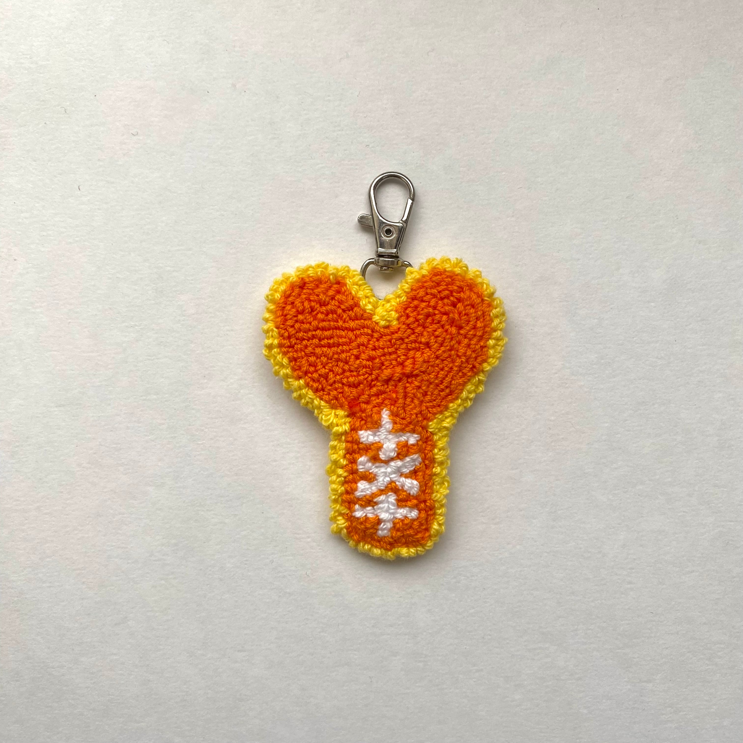 イニシャル文字の中にグループ名を入れたネームキーホルダーです。